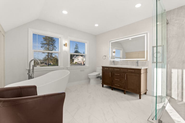 EA Home Builders has transformed this Antioch master bathroom into a luxurious Belle Époque-inspired retreat. The renovation marries timeless elegance with modern functionality, creating a bright, sophisticated space where homeowners can indulge in comfort and opulence every day.