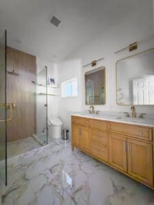 During the process of bathroom Remodeling in Antioch, the skilled team at EA Home Builders meticulously dismantled the old fixtures, carefully preserving any salvageable materials. They expertly handled the necessary plumbing and electrical work to accommodate the additional sinks and mirrors, ensuring functionality and safety. The walls were reconfigured to create a larger shower area, and new plumbing lines were installed to accommodate the double shower. The team paid meticulous attention to every detail, ensuring that the construction process was smooth and efficient.